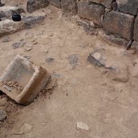 Jordan. Umm al Jimal, a baptismal room built against the church on the northeast side with baptismal font