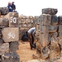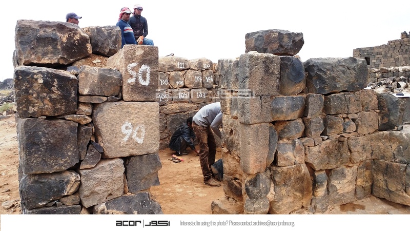 - Jordan. Umm al Jimal, local workers working on the restoration of Commodus Gate