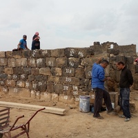 - Jordan. Umm al Jimal, local workers working on the restoration of Commodus Gate