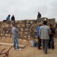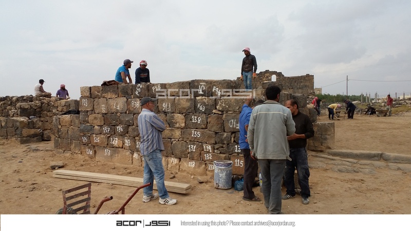 - Jordan. Umm al Jimal, workers working on the restoration of Commodus Gate