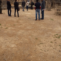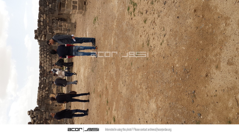- Jordan. Umm al Jimal, visitors in Cathedral with apse area in background