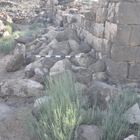 - Jordan. Umm al Jimal, trail between House XVII and Roman Reservoir, photo taken before path was cleared