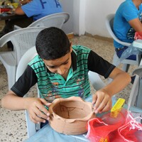 - Jordan. Busayra, school group archaeological site visit and pottery activity