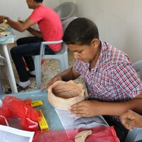 - Jordan. Busayra, school group archaeological site visit and pottery activity