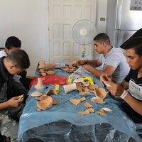 - Jordan. Busayra, school group archaeological site visit and pottery activity