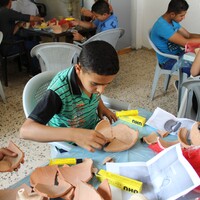 - Jordan. Busayra, school group archaeological site visit and pottery activity