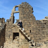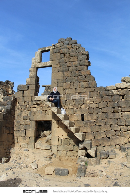 - Jordan. Umm al Jimal, House XVII and XVIII, Nisreen Abu Al Shaikh on stairway