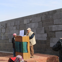 Jordan. Umm al Jimal, Prince Ra'ad bin Zeid giving a speech at groundbreaking ceremony, visitors