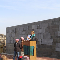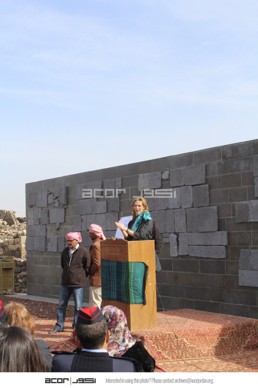 - Jordan. Umm al Jimal, Jenna Morton giving a speech at groundbreaking ceremony, visitors