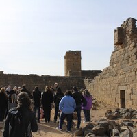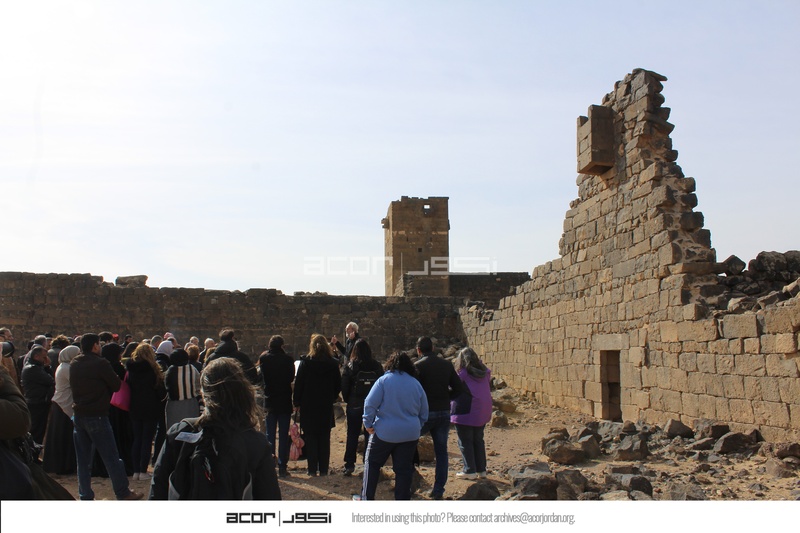 Jordan. Umm al Jimal, Bert de Vries giving tour to visitors
