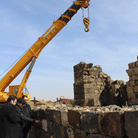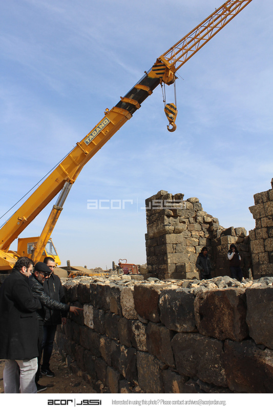 - Jordan. Umm al Jimal, crane for restoration activities, Commodus Gate, Nizar Al Adarbeh, Jehad Haron, visitor