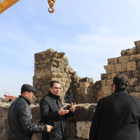 - Jordan. Umm al Jimal, crane for restoration activities, Nizar Al Adarbeh, Jehad Haron, visitor
