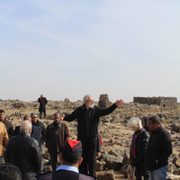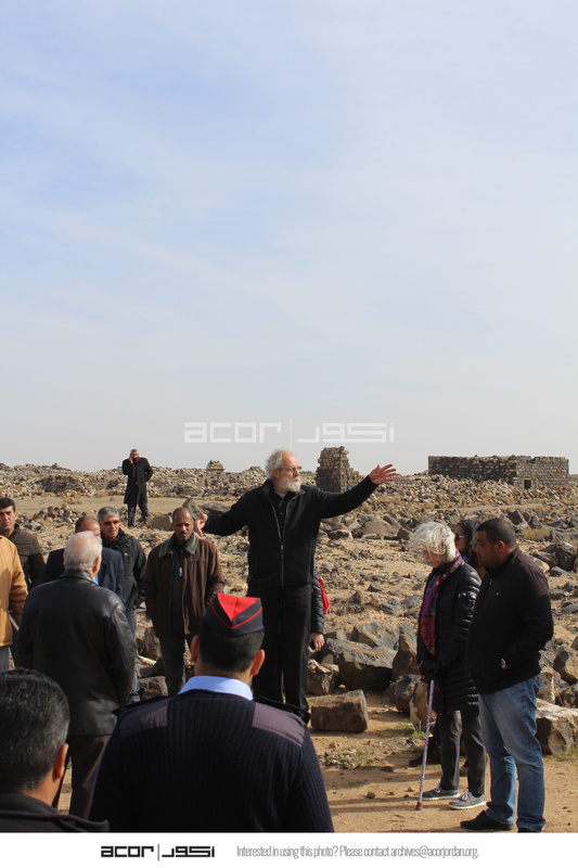 Jordan. Umm al Jimal, Bert de Vries giving tour, visitors