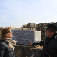 - Jordan. Umm al Jimal, replica inscription for Commodus Gate in latin, visitors