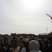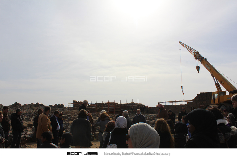 Jordan. Umm al Jimal, crane for restoration activities, visitors