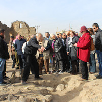 Jordan. Umm al Jimal, Bert de Vries gives a tour to visitors at groundbreaking ceremony for the opening of the Interpretive and Hospitality Center