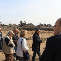 Jordan. Umm al Jimal, Dr. Monther Jamhawi, Prince Ra'ad bin Zeid and other visitors at groundbreaking ceremony for the opening of the Interpretive and Hospitality Center