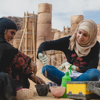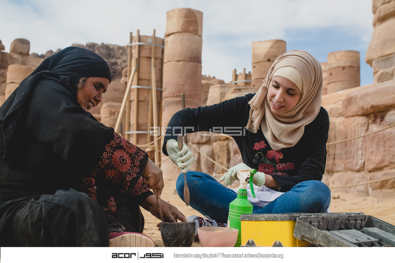 - Jordan. Petra, Temple of the Winged Lions, Wajd Nawafleh and Ageleh Jmeidi with conservation tools