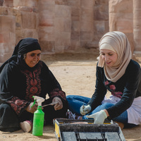 - Jordan. Petra, Temple of the Winged Lions, Wajd Nawafleh and Ageleh Jmeidi with conservation tools
