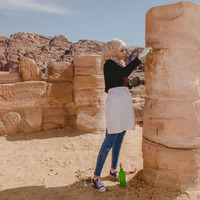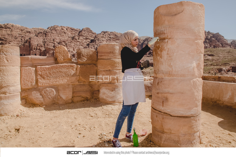 Jordan. Petra, Temple of the Winged Lions, Wajd Nawafleh mortaring