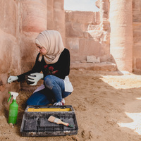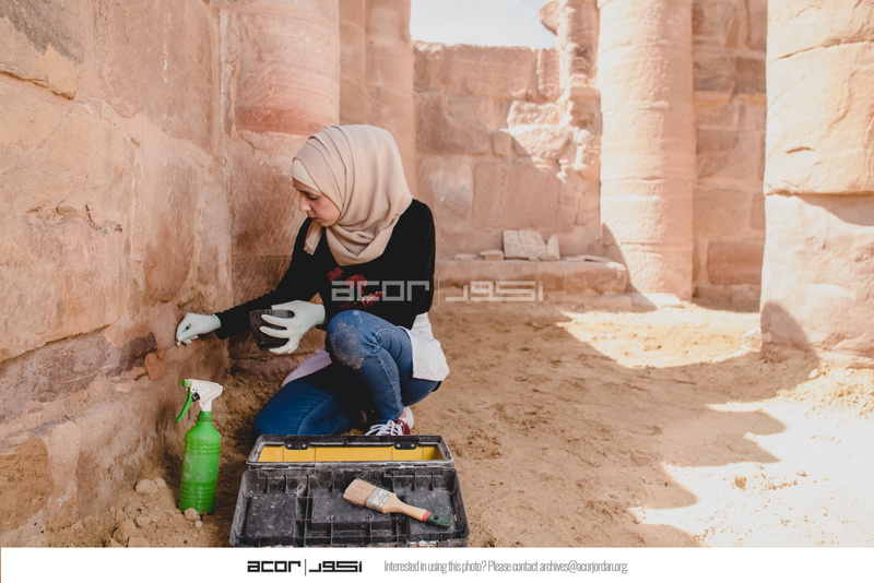 Jordan. Petra, Temple of the Winged Lions, Wajd Nawafleh mortaring