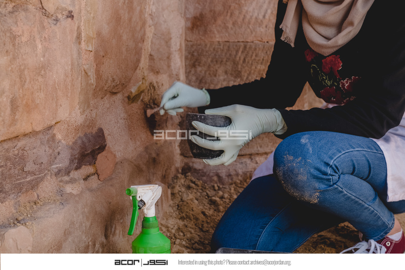 Jordan. Petra, Temple of the Winged Lions, Wajd Nawafleh mortaring