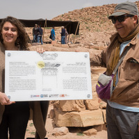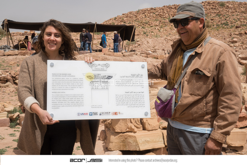 - Jordan. Petra, Temple of the Winged Lions, Miriam Saleh holds up one of the eight graphic panels that she designed for TWL, with Franco Sciorilli at marking event