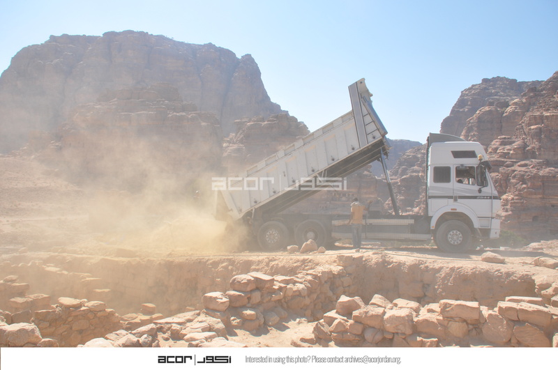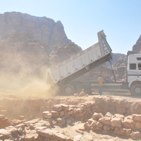 - Jordan. Petra, Temple of the Winged Lions, truck delivering soil from outside the park for the purpose of backfilling