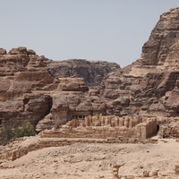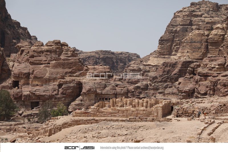 - Jordan. Petra, Temple of the Winged Lions, view of TWL towards the west with Jabal Habis in the background, showing site after conservation work, accessible from pathway