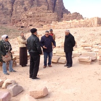 - Jordan. Petra, Temple of the Winged Lions, lapidarium, Director General of the Dept. of Antiquities Dr. Monther Jamhawi with Jehad Haron, Sana Al Hamadeen, Mohammad Shobaki, Ahmad Mowasa, and Eman Abedsalam
