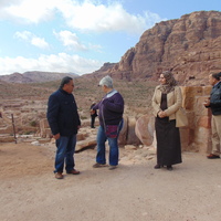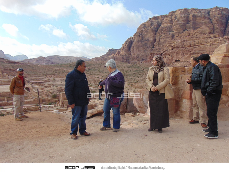 - Jordan. Petra, Temple of the Winged Lions, Director General of the Dept. of Antiquities Dr. Monther Jamhawi with Jehad Haron, Elena Ronza, and Sana Al Hamadeen and Ghassan Al Deir of the Dept. of Antiquities