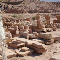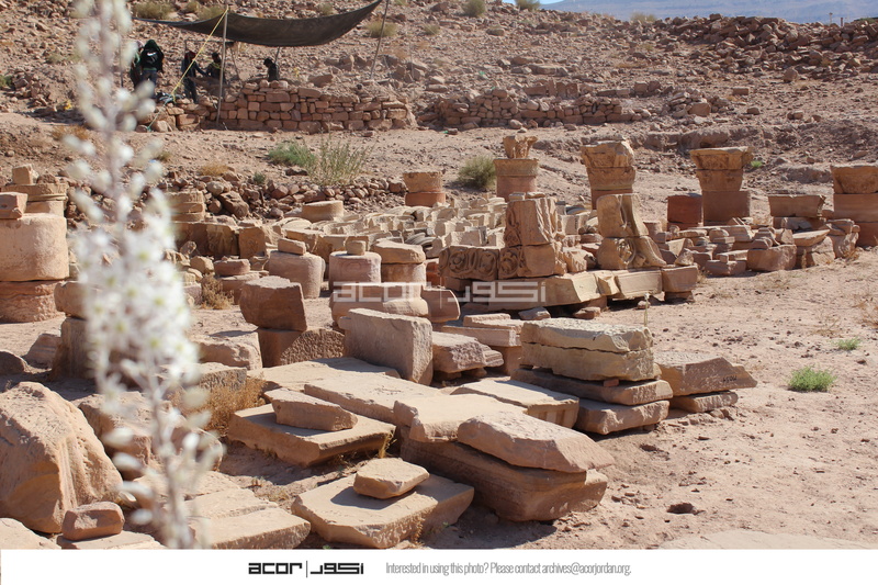 - Jordan. Petra, Temple of the Winged Lions, lapidarium with asphodel flower in foreground