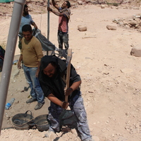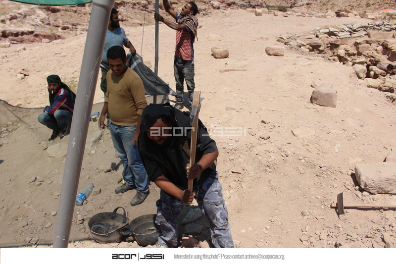 Jordan. Petra, Temple of the Winged Lions, sifting station, team members