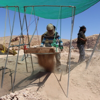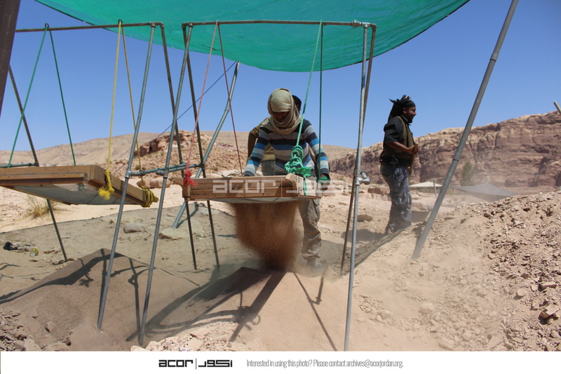 Jordan. Petra, Temple of the Winged Lions, sifting station, team members