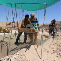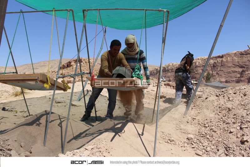 Jordan. Petra, Temple of the Winged Lions, sifting station, team members