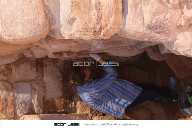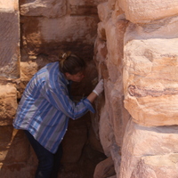 - Jordan. Petra, Temple of the Winged Lions, team members mortaring wall in southwest quadrant