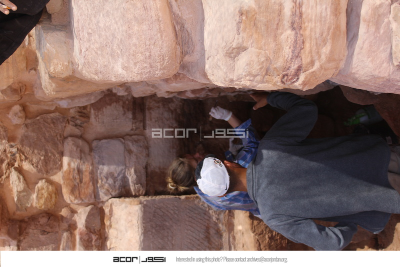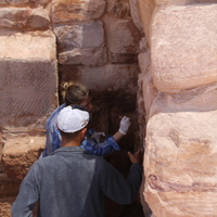 - Jordan. Petra, Temple of the Winged Lions, team members mortaring wall in southwest quadrant