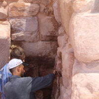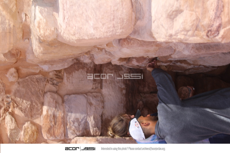 - Jordan. Petra, Temple of the Winged Lions, team members mortaring wall in southwest quadrant