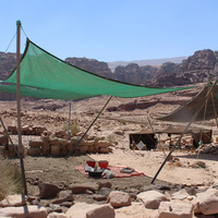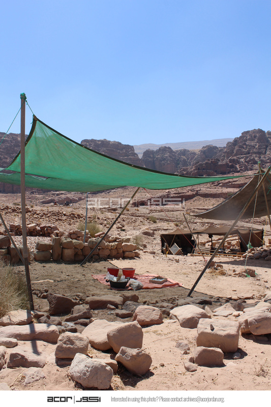 Jordan. Petra, Temple of the Winged Lions, shade by the pottery dump