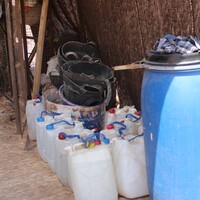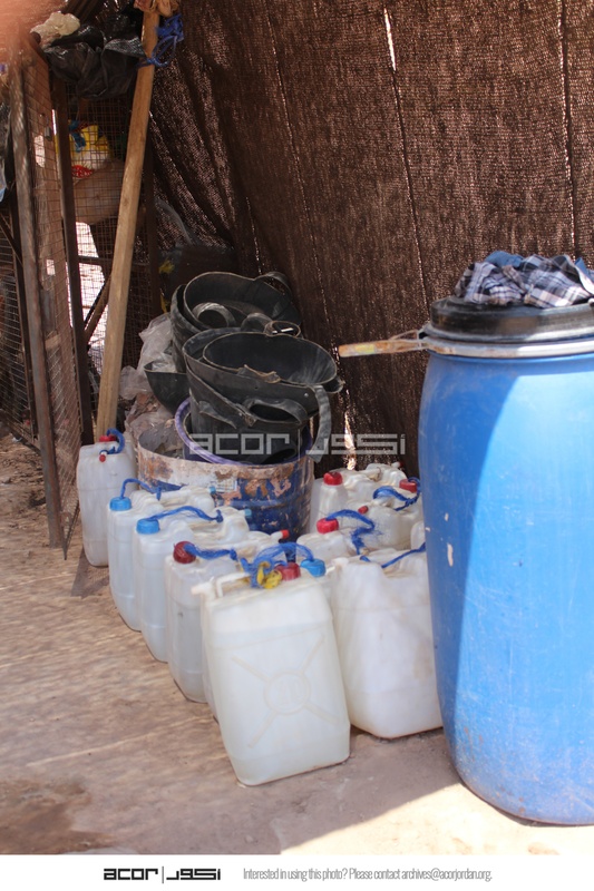 - Jordan. Petra, Temple of the Winged Lions, water canisters inside tent, guffahs (buckets made out of used tires)