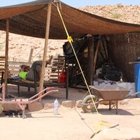 Jordan. Petra, Temple of the Winged Lions, team member inside tent