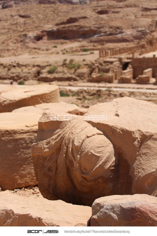 - Jordan. Petra, Temple of the Winged Lions, piece of sculpture from pronaos, shoulder from a male bust