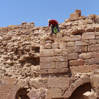 - Jordan. Petra, Temple of the Winged Lions, southwest quadrant, team member applies biocide (diluted herbicide) on vegetation