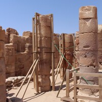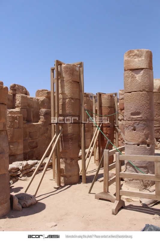 - Jordan. Petra, Temple of the Winged Lions, looking at west aisle of cella with wooden column braces