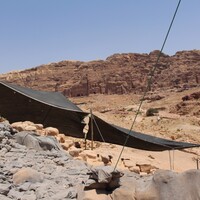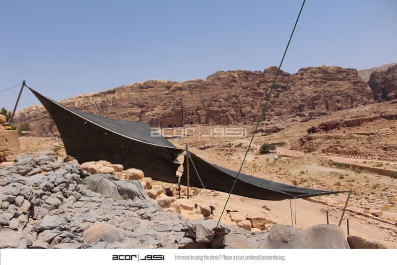 - Jordan. Petra, Temple of the Winged Lions, sandbags and geotextiles draped over to keep water from entering