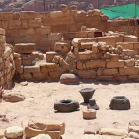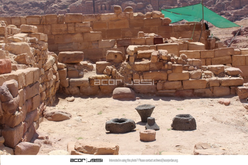 - Jordan. Petra, Temple of the Winged Lions, basalt grinding stones in room within northern complex
