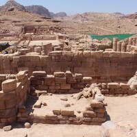 Jordan. Petra, Temple of the Winged Lions, north side of temple, facing south