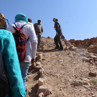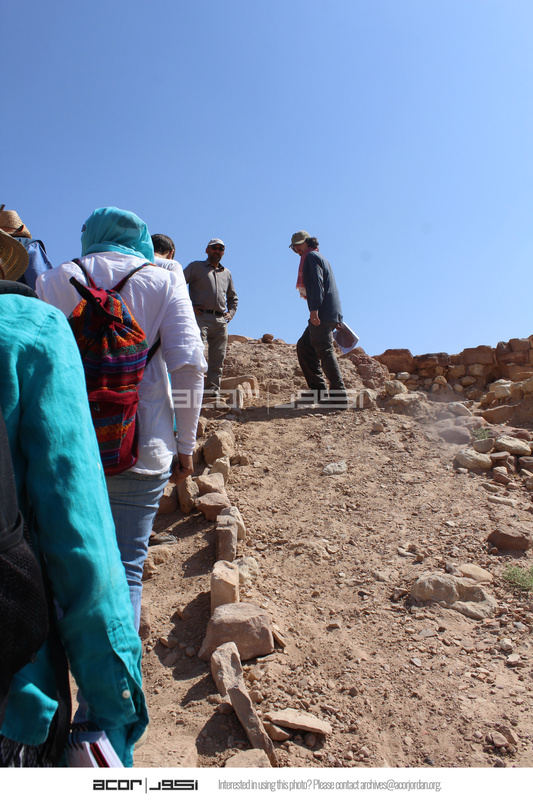 - Jordan. Petra, Temple of the Winged Lions, visitors on path, Jehad Haron and Glenn Corbett in background, team members