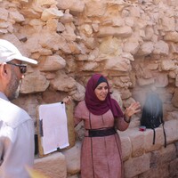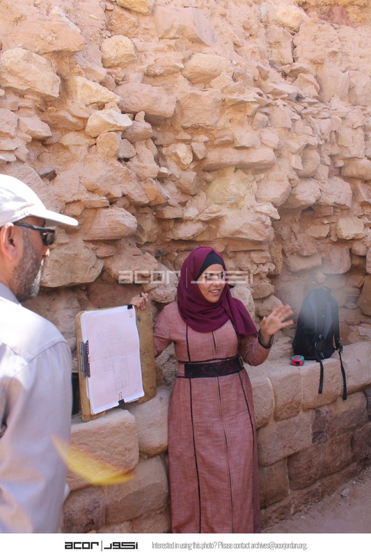 - Jordan. Petra, Temple of the Winged Lions, Halemah al Nawafleh conducts condition documentation of wall in southwest section