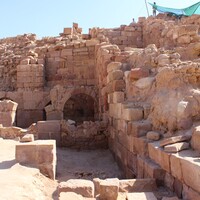 Jordan. Petra, Temple of the Winged Lions, southwest quadrant facing north